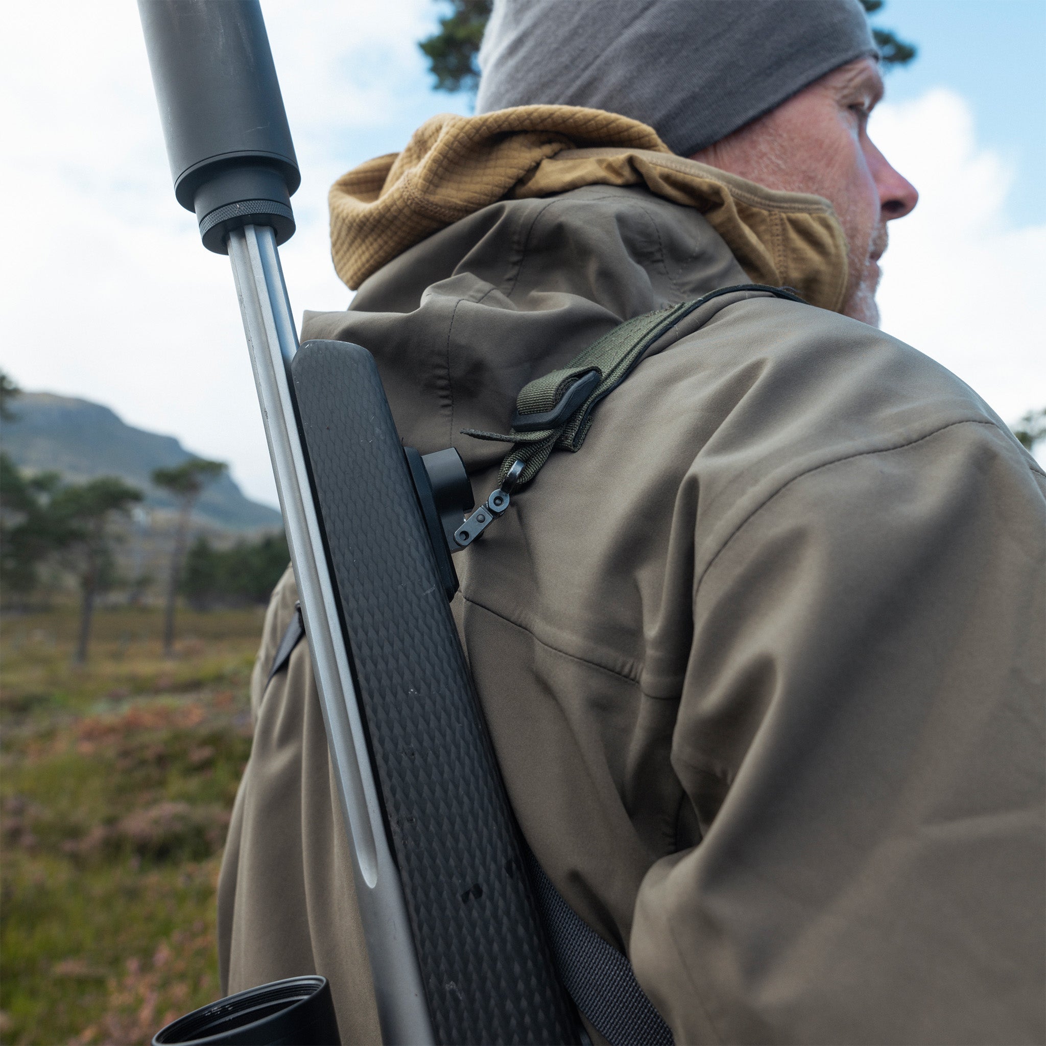 The Classic Rifle Adapter enables our Spartan Javelin and SpringBok Bipods, Ascent, Hoplite, and Sentinel Tripods, SpringBok Quad Sticks, and Davros Heads to be attached and detached in seconds to traditional hunting rifles with removable sling swivel studs.