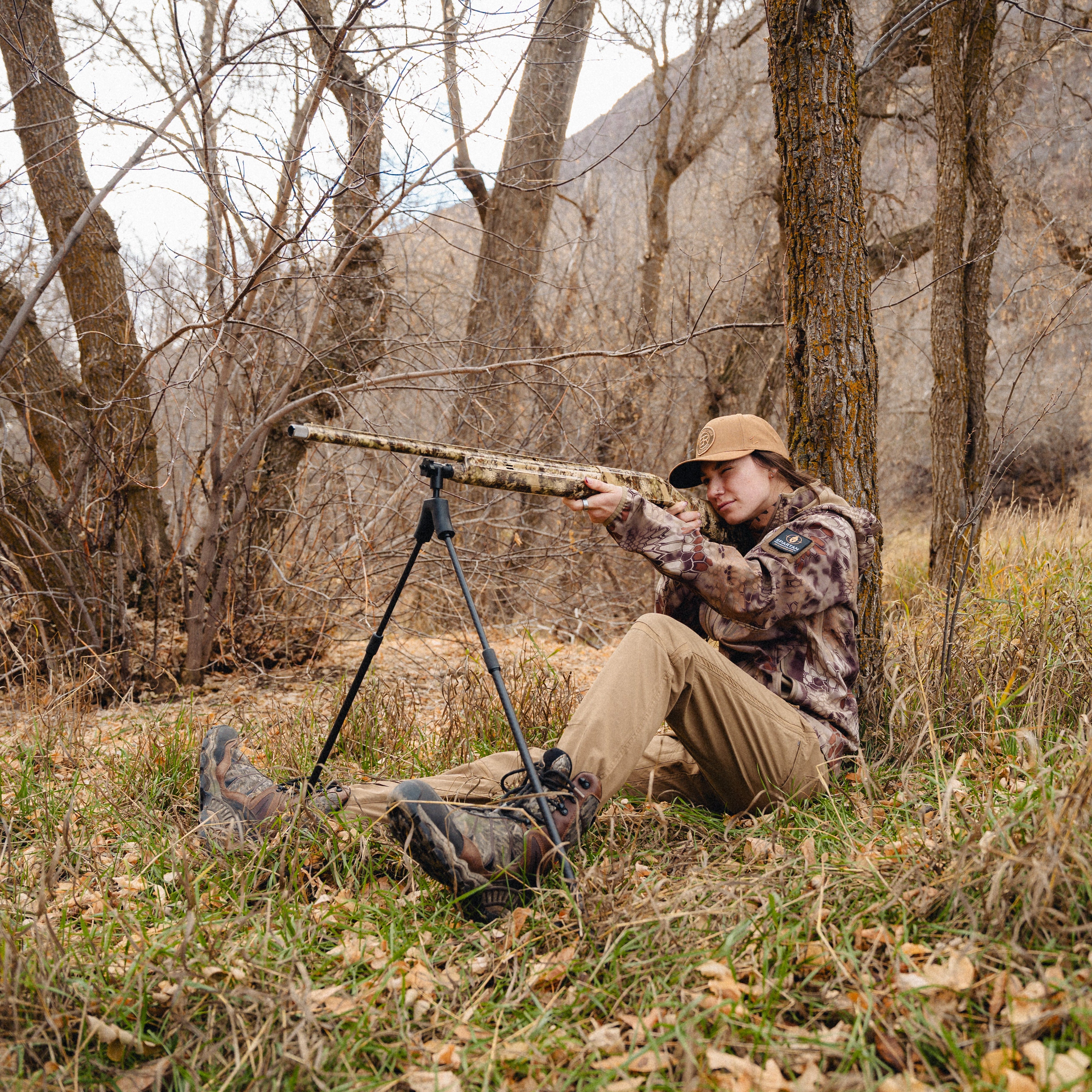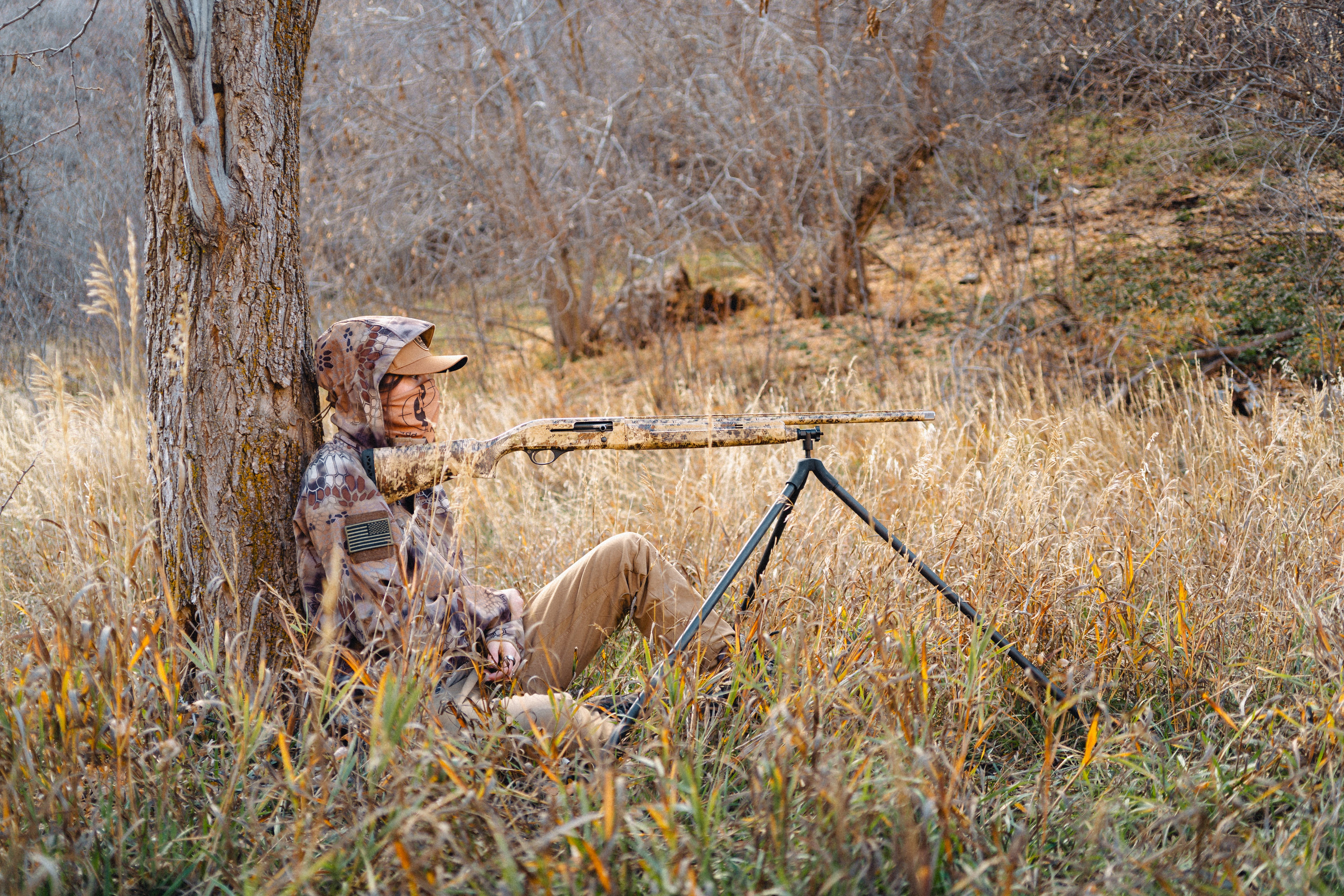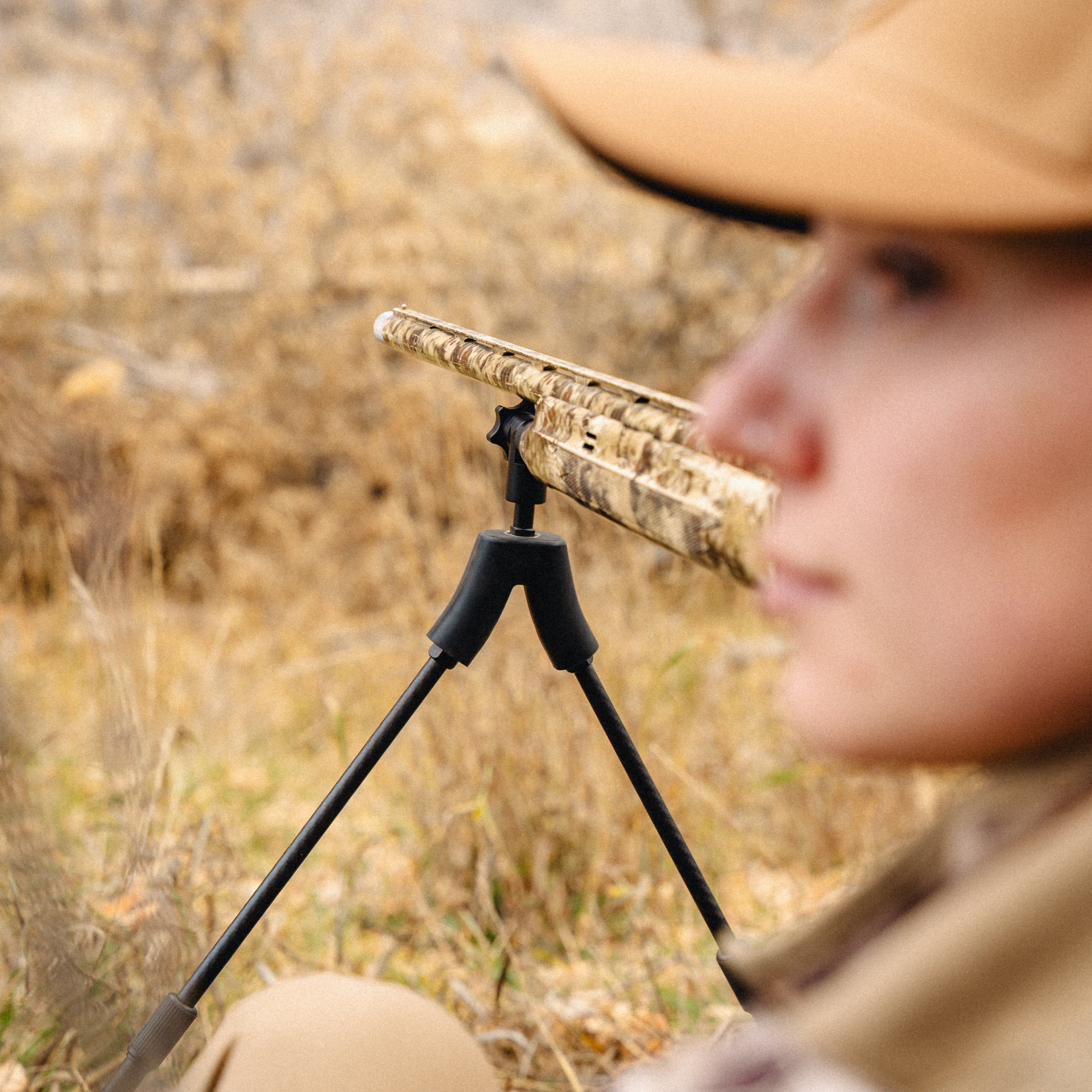 A bipod provides stable, hands free support while waiting in position, keeping the shotgun safely oriented and ready without resting it on the hunter’s knee. This reduces fatigue and movement, allowing for a steadier and more consistent ready position after extended periods of waiting.